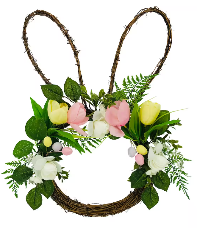 This year I opted to make a bunny-shaped easter door decoration by up-styling a Michael’s wreath .