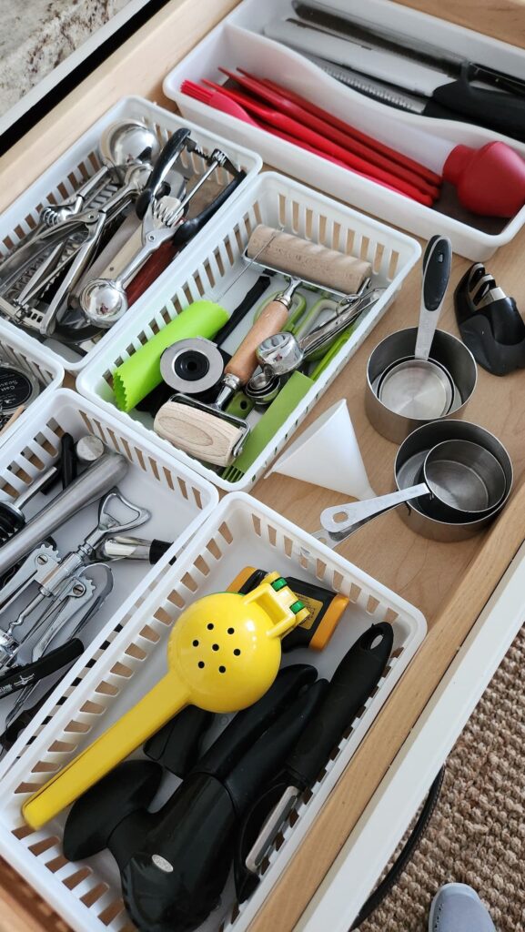 kitchen utensil drawer before cleaning