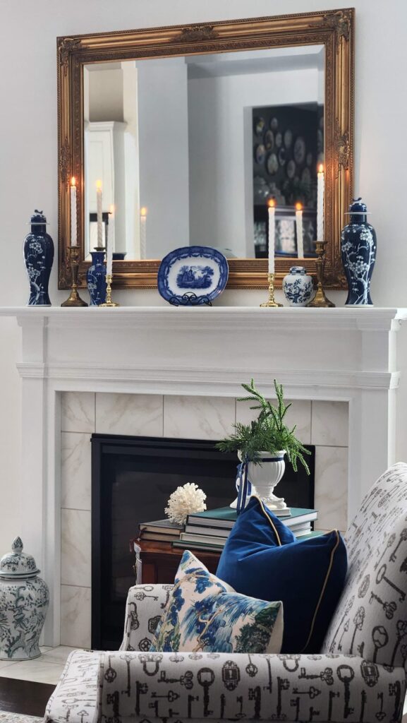This living room has been such a labor of love — layered slowly over time with pieces that just feel right. The French chair, the gold mirror, the blue and white ginger jars — nothing here was bought all at once. It was collected, hunted, and loved into place. If you’ve been asking where things are from, friend, you’ve come to the right place. I’ve pulled together every living room source right here so you can shop the look — or just get inspired to start your own.